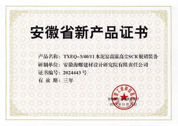 近日,安徽省工業(yè)和信息化廳公布了2024年第三批省首臺套重大技術(shù)裝備名單,海螺設(shè)計院“水泥窯高溫高塵SCR脫硝關(guān)鍵技術(shù)及成套裝備”榜上有名。此前,該項目于11月18日通過了安徽省新產(chǎn)品認(rèn)定。